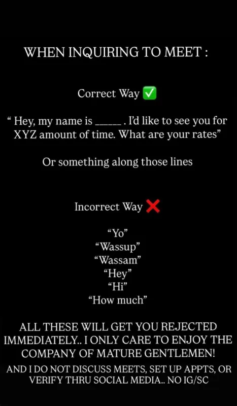 Outcall available but client must provide transportation. No VOIP/app/fake numbers No amount of my time available for less than 1⃣7⃣5⃣...