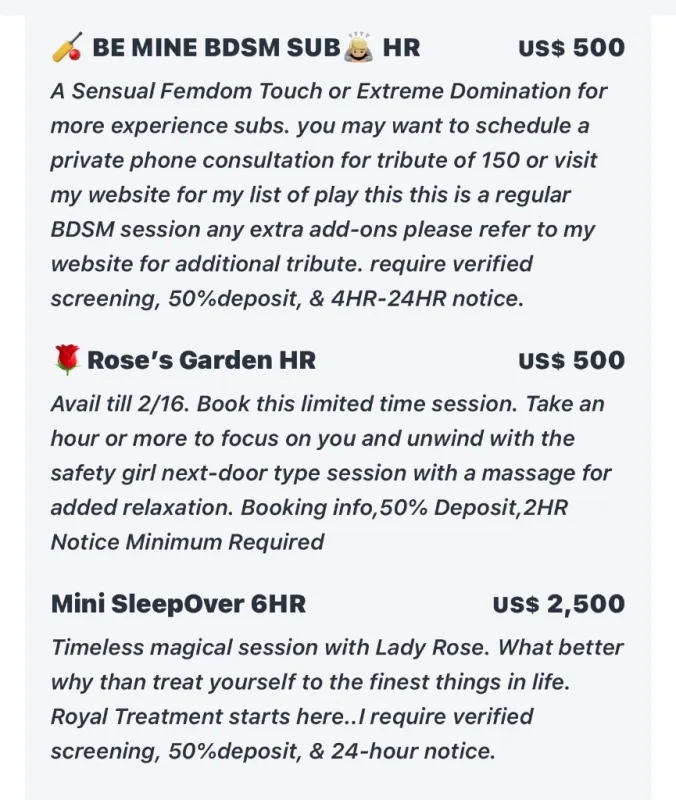 Hi High Caliber Suitors Ova 40 Mall of American 2/5-2/6 Only BOOKING ME REQUIRES: Sending Me All the Booking Info Must be deposit ready via cashapp,Venmo,ApplePay,Zelle or PayPal Advance Notice minimum notice LMA/SQUEEZE IN There Will Be An Additional $50 Charge For Any Squeeze In Appts aka Last Min Appts. PLEASE NOTE: I ONLY ACCEPT APPTS VIA TEXT MESSAGE.I do not reply to incomplete text messages(ie “Hi” “Available” etc). Don’t Be A Timewasters thanks. BOOKING INFO I REQUEST FOR APPT: Name,Age,Race The City You Are In Preferred meeting time & day Type of Appt/Length of your meeting Where did you see my ad Can't wait to get together, Lady Rose Text Only